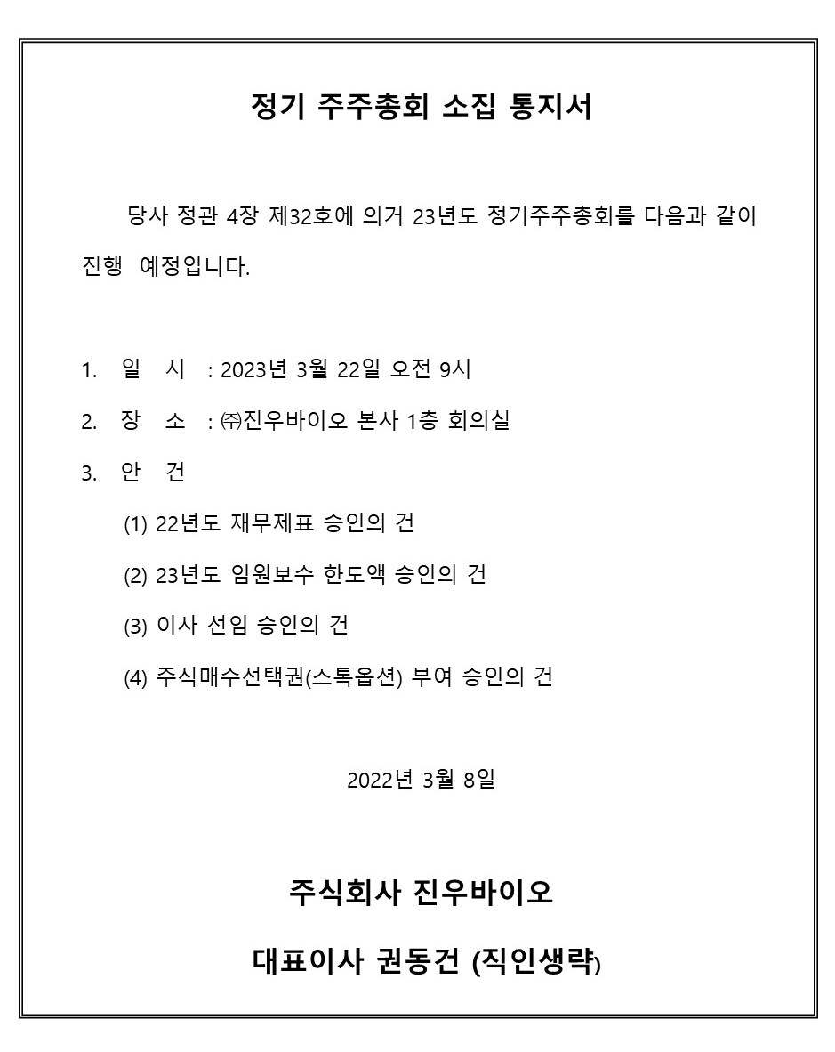 23³âµµ (ÁÖ)Áø¿ì¹ÙÀÌ¿À Á¤±âÁÖÁÖÃÑȸ ÀÏÁ¤À» °øÁöµå¸³´Ï´Ù.